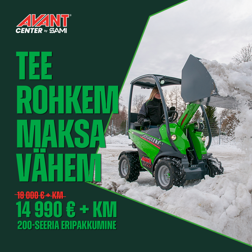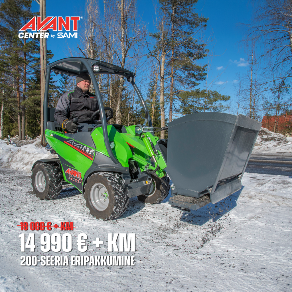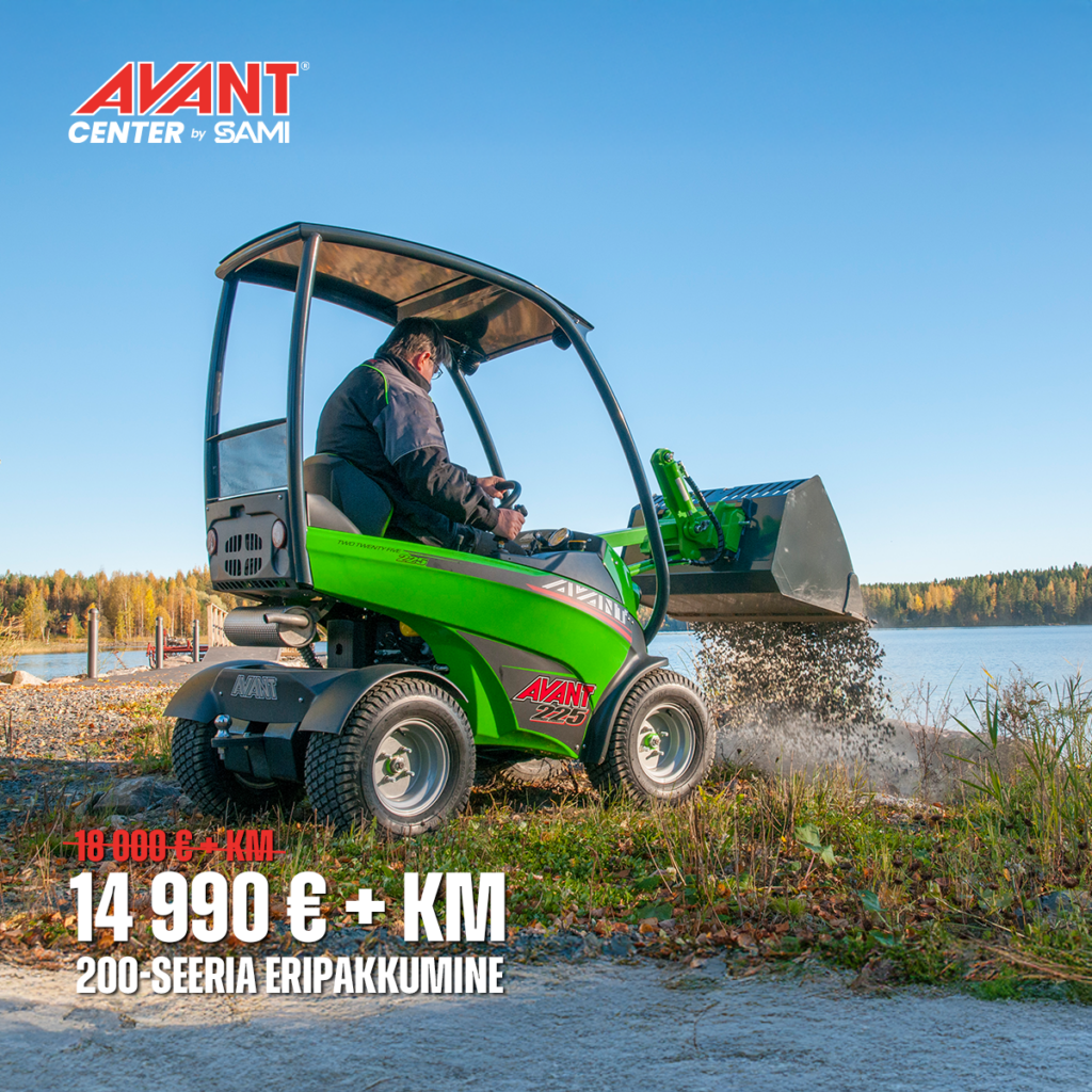 Kas otsid masinat, mis mahub treilerile, ent teeb ära traktoritööd? Avant 225 laadur tõstab kuni 350 kg ja ulatub 1,4 m kõrgusele, samas jõuab 10 km/h töökiiruseni ja pakub 20 hj võimsust. Tänu 4×4 veoskeemile ja enam kui 100 töövahendile, on see väike hiiglane valmis niitma muru, lükkama lund, laadima halge ja tegema kõike, mida hoov või talu nõuab. Praegu kõik uued laadurid 3 aastase garantiiga.